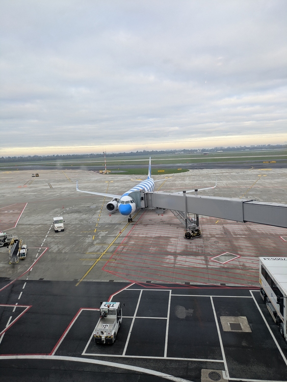Morgens um halb sechs ging es mit dem Bus zur S-Bahn und mit dieser zum Terminal. Aufgabegepäck muss man inzwischen nicht nur selbst labeln sondern auch "aufgeben". Ich würde mit meinem im schwarzen Müllsack verpackten Rucksack aber direkt instruiert, dass ich an den Schalter müsse. Nun gut am Schalter dann auch falsch. Sie hatte das Gepäck dann zwar registriert aber was ich denn damit tun sollen musste ich nochmal nachhaken. So ging es weiter zum Sondergepäck wo sich mein kleiner Rucksack zu Golfausrüstung und Surfboards gesellte.