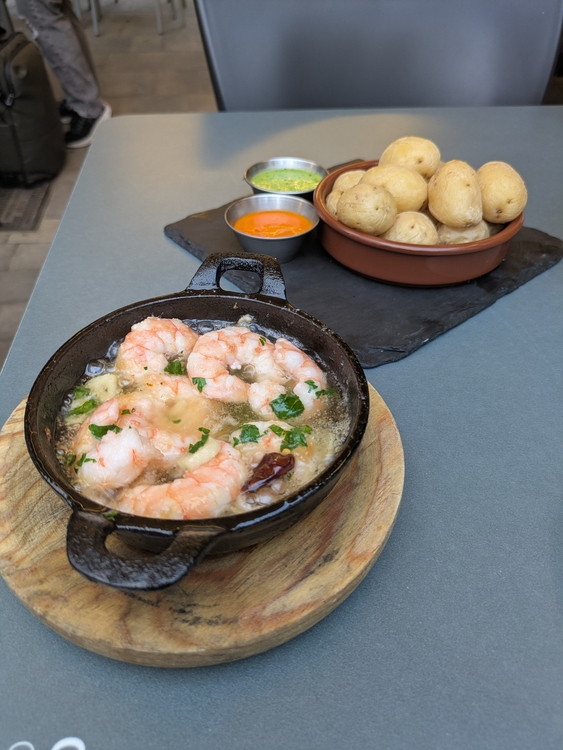 Gambas waren sehr schmackhaft, die Papas allerdings wenig arugadas aber mit dem Mojo noch ok.