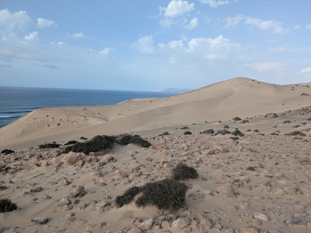 Irgendwann geht es dann durch Sand recht steil bergauf. Hier treffe ich tatsächlich auf den ersten anderen Wanderer.