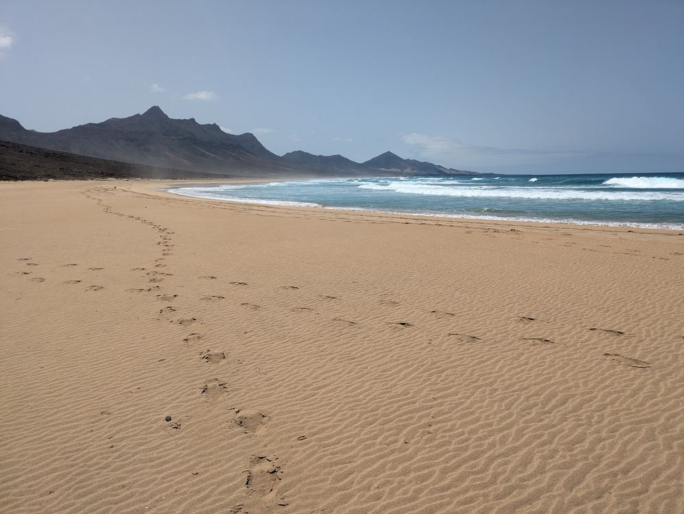 Am Strand von Cofete auche ich mir ein lauschiges Plätzchen und mache es mir in der prallen Sonne gemütlich.