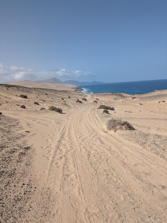 Direkt verpeilte ich den Weg und quälte mich ich vollkommen unnötig einen steilen Hand mit tiefen und lösen Sand hinauf..