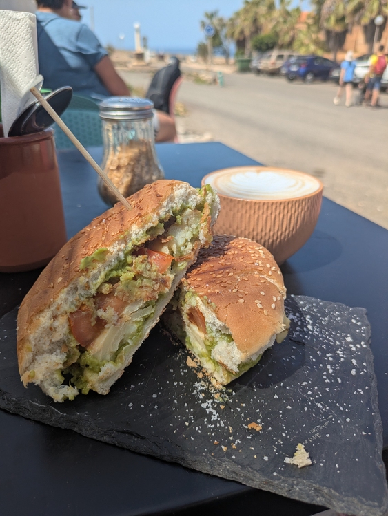 Dort suchte ich ein kleines Café auf und gönnte mir einen Avocadoburger und Café als Stärkung. Außerdem konnte ich die Powerbank nachladen und das Wifi nutzen.