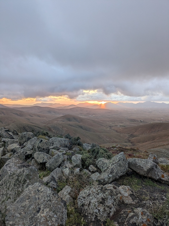 Der Wind fegt schon wieder unermüdlich und ich hab drei Lagen an. Die Aussicht ist allerdings grandios. Beim absteigen macht sich dann das rechte Knie bemerkbar. Oh je.