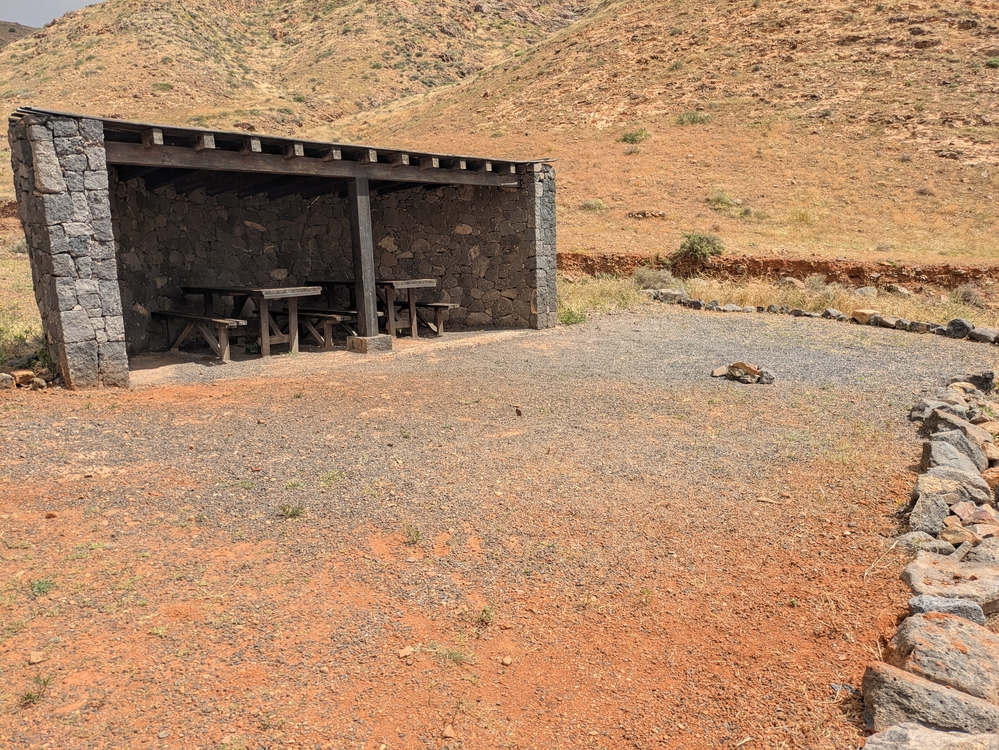 An der Hütte muss ich feststellen, dass das "Dach" eher rudimentären Regenschutz bietet. Die massive Wände blockieren den Wind dafür wunderprächtig. Leider passt mein Zelt nur auch dort nicht neben die Bänke und die Heringe kommen nicht in den Boden.