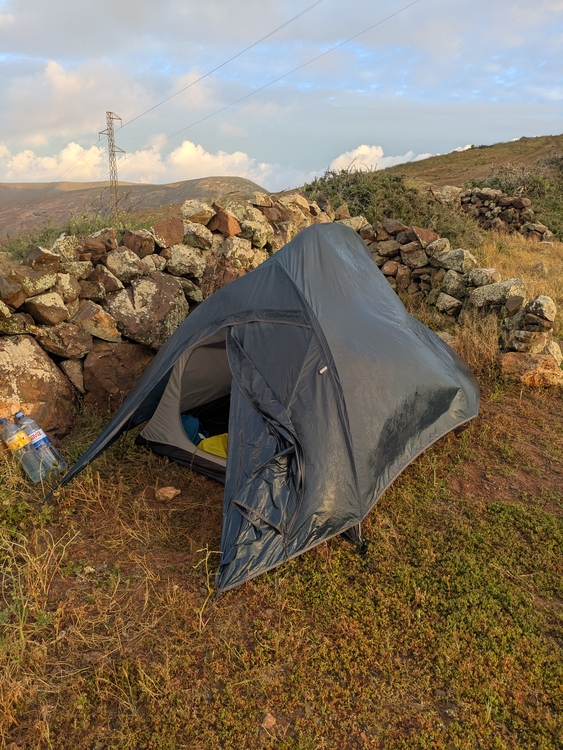 Abends regnete und stürmte es noch eine ganze Zeit aber im Schlafsack eingemümmelt konnte ich verhältnismäßig gut schlafen. Nur um vier drückte die Blase und ich musste raus.
