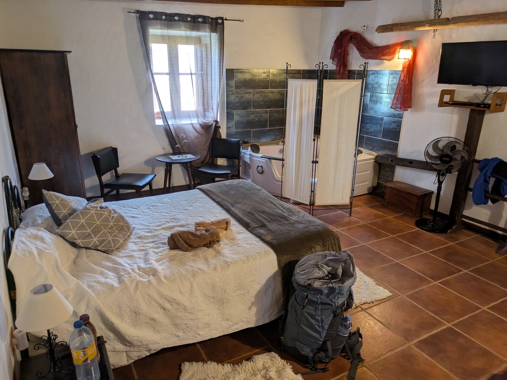 Sie wandern den GR131 von Nord nach Süd und kommen nicht nur aus der Bar, die ich ansteuere, sondern haben wohl auch in der selben Unterkunft genächtigt, in der ich heute bin. In Anbetracht der Anzahl an Optionen aber eigentlich sogar relativ wahrscheinlich.