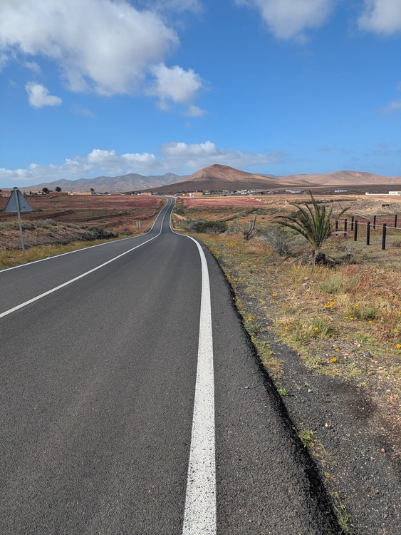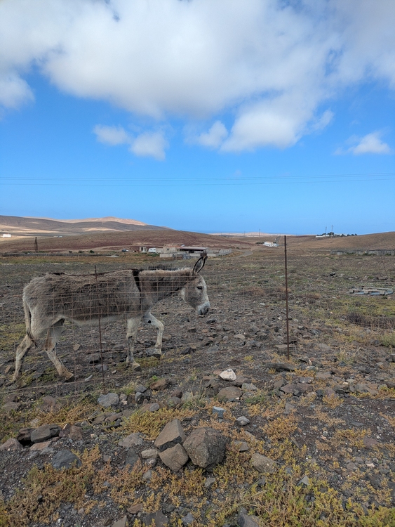 Kurz vor 10 geht es dann los. An einer weiteren Mühle hinein nach Tefia und fast immer auf Pisten weiter nach Tindaya. Unterwegs treffe ich auf einen einsamen Esel der freudig zu mir angaloppiert kommt als ich ihn grüße. Leider habe ich nichts für ihn :(