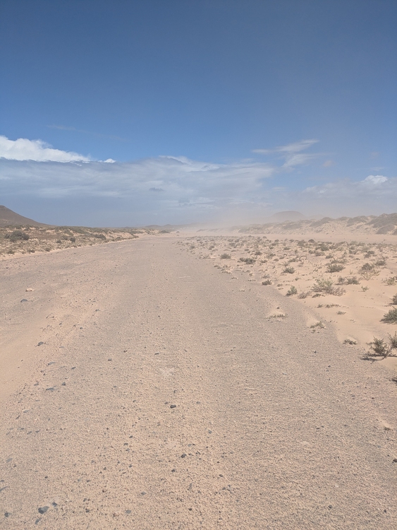 Der Weg hinter dem Pass wird dann mehr ein Wüstenweg und durch den Wind peitscht es einem konstant Sand an den Körper.