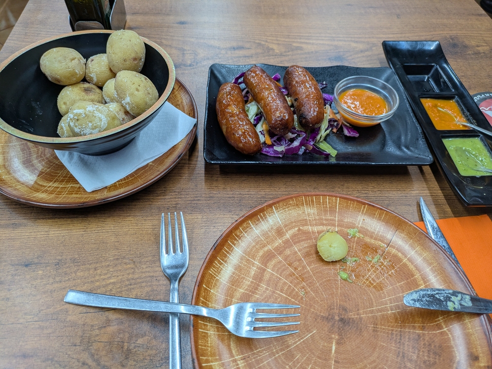 Die Papas Arugadas machen heute Mal ihrem Namen alle Ehre und es ist zudem eine riesen Portion für 6,5€. Dazu gibt es Chorizo, die schmackhaft aber schon sehr fettig sind.