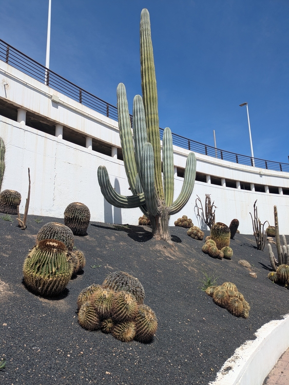 Am Flughafen genieße ich draußen noch etwas die Sonne und prächtigen Kakteeen bis es mir zu heiß wird.