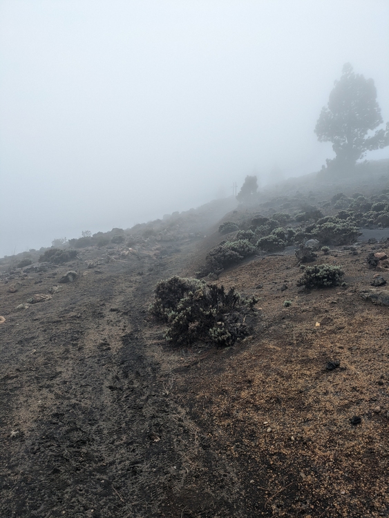 Als es in etwas exponierte Lage geht hängt alles voll Wolken und der Wind peitscht. Ich überlege kurz nicht doch besser umzukehren aber diese Wetterlage hat ja auch seinen Charme!