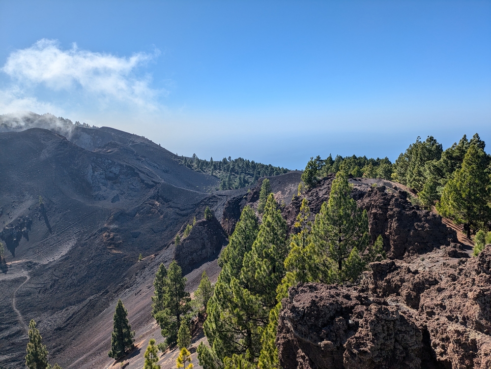 Als es aufklart und man einen tollen Blick auf die Westküste erhaschen kann und die Vulkane sieht bin ich aber doch dankbar. Die Sonne kommt auch mehr und mehr durch. Nur die Orkanböen bleiben konstanter Begleiter. Sie schieben die Wolken manchmal so schnell daher, dass einem fast schwindelig wird.