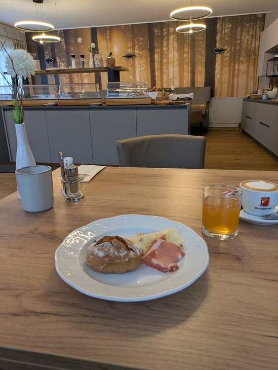 Der Frühstücksraum der Unterkunft ist wirklich schick eingerichtet und beim Frühstück fehlt es an nichts.