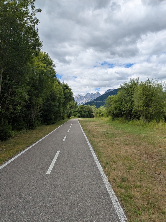 Kurz vor Bovec kommen mir die beiden Deutschen auf der anderen Straßenseite entgegen. Ich realisiere es aber erst als ich höre ah den kennen wir doch und schaffe es gar nicht richtig zu reagieren.