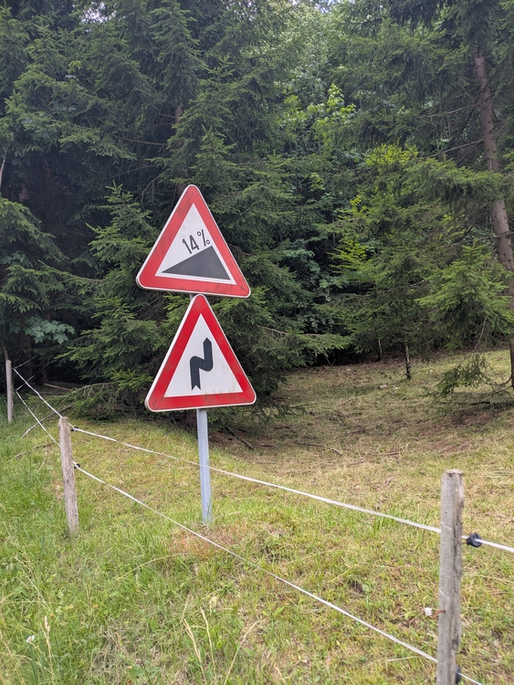 Irgendwann überholt mich ein deutsches Paar auf Mountainbikes. Er schlussfolgert richtig, dass jemand mit einem Radon Bike nur Deutscher sein kann und zollt mir direkt Respekt sich mit dem Gepäck hinauf zu ackern. Erstaunlicherweise kann ich mich trotz der Belastung noch halbwegs unterhalten und so fahren wir ein Stück zusammen.