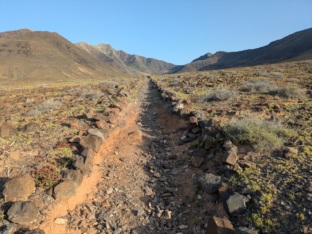 Es geht aus Morro Jable hinaus Richtung GR131. Alles ist noch ziemlich ausgestorben aber dann kommt mir doch glatt eine Kellnerin von gestern entgegen.