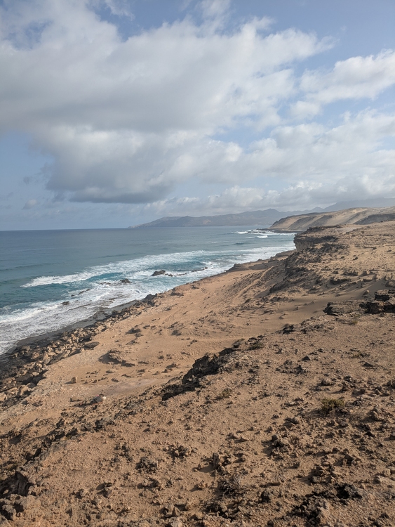 Nach etwas über zwei Stunden war der eigentlich avisierte Schlafplatz von gestern erreicht und ich ging ein Stück direkt am Meer. Dort kamen dann auch noch weitere Top Spots zum Zelten und man hatte noch einmal das imposante Meer aus nächster nähe. Theoretisch sollte man auch immer entlang der Klippen bei La Pared raus kommen aber irgendwie hatte ich bedenken und gurkte noch ein ganzes End durch die Wüste bis es auf den GR131 ging, der mich nach La pated führte.