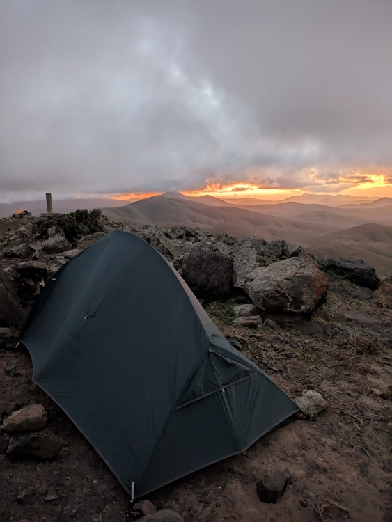 Beim Zeltaufbau hatte ich den Platz für die Apsis verplant und der notdürftige Behelf mittels Steinen funktionierte nur bedingt. So wurde das immer wieder vom Wind aufgeblasen oder gegen Innenzelt gedrückt. Auch sonst zerte und drückte der Wind unermüdlich am Zelt. Das sorgte dann wieder für eine Nacht ohne längere Schlafphasen.