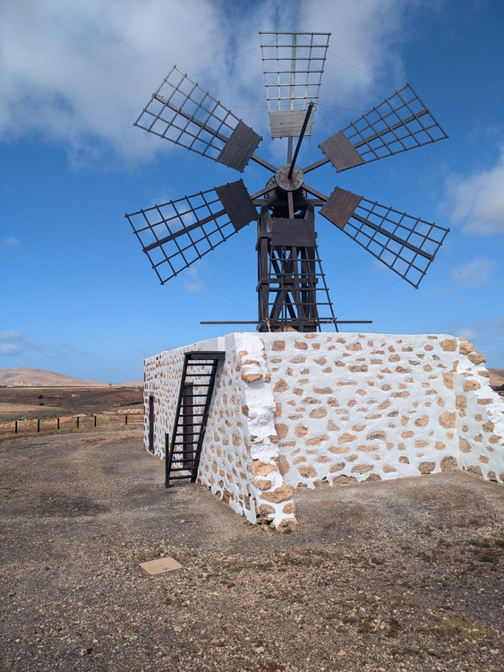 Kurz vor 10 geht es dann los. An einer weiteren Mühle hinein nach Tefia und fast immer auf Pisten weiter nach Tindaya. Unterwegs treffe ich auf einen einsamen Esel der freudig zu mir angaloppiert kommt als ich ihn grüße. Leider habe ich nichts für ihn :(