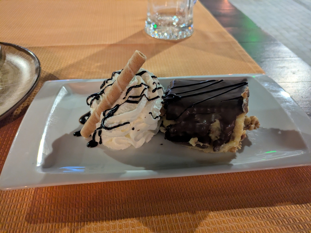 Zum Nachtisch eine Tarta Maripepa, die auf Fuerteventura traditionell sein soll, obwohl es auch endlich wieder Gofio Mousse gegen hätte.