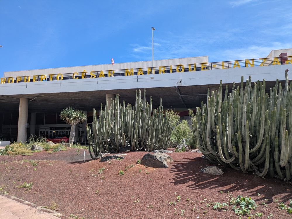 Am Flughafen genieße ich draußen noch etwas die Sonne und prächtigen Kakteeen bis es mir zu heiß wird.