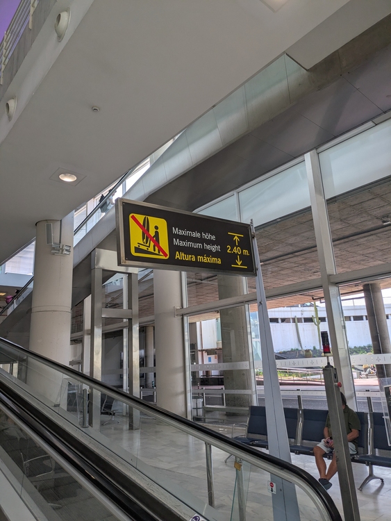 Während es bei vielen Schaltern endlose Schlangen gibt, ist bei Condor noch nix los und alles klappt reibungslos. Nur zum Sondergepäck muss ich auch hier.