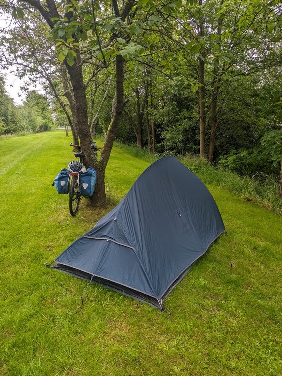 Um kurz nach sechs rollte ich dann auf den Campingplatz ein. Angemeldet, kurz mit den Nachbarn geschnackt und dann getestet ob man das Außenzelt zuerst aufbauen kann. Funktionierte so mittelprächtig. Da es es sich zu dem Zeitpunkt etwas beruhigt hatte war das aber nicht so das größte Problem. Im Regen möchte ich das nach der Erfahrung aber eigentlich lieber nicht machen müssen...