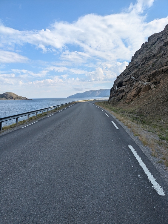 Am Rema treffe ich direkt auf einen Nachzügler aus der Fähren Zeit. Es ist der solo Radreisende Österreicher. Bei ihm geht es erst am Montag per Schiff zurück. Das könnte hier doch etwas lang werden. Immerhin kann er so auf wieder besseres Wetter für seinen Nordkapp Besuch warten.